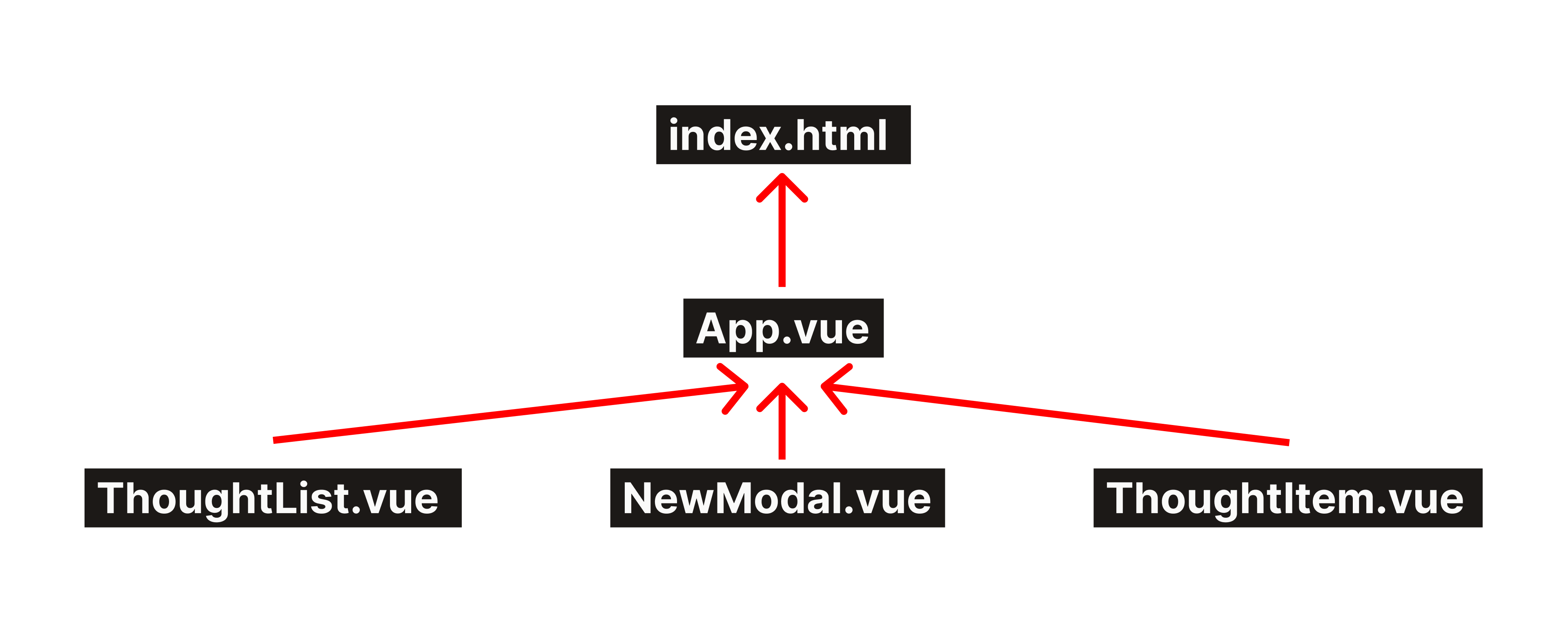 But first, notice that we'll need to access our API from two separate components: ThoughtList for retrieving all items, and NewModal for adding new items to the list.